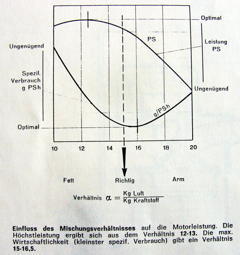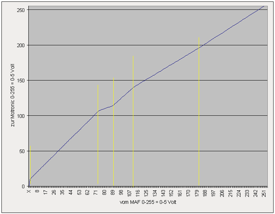 Die Tabelle zeigt das Luft/Kraftstoffverhältnis beim originalen Luftmengenmesser.