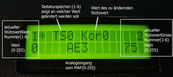Fahrt (ein Auge auf die Lambdaspannung) wurde dann eine Einstellung gefunden bei der der Motor ohne Probleme läuft.